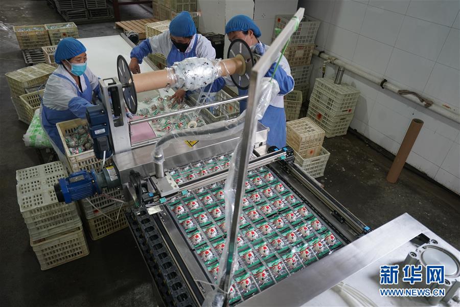 江蘇高郵鴨集團的工作人員將塑封好的鴨蛋產品進行進一步加工作業(yè)(4月15日攝)?!案哙]鴨蛋”是江蘇高郵的特色農業(yè)名片。近年來,當地在良種繁育、生態(tài)養(yǎng)殖、產品加工等方面加大力度,推動高郵鴨蛋品牌化建設,讓小鴨蛋成為帶動農戶致富的大產業(yè)。2019年,高郵市共計生產熟制鴨蛋產品近11.2億枚,年產值近17.68億元。新華社記者李博攝