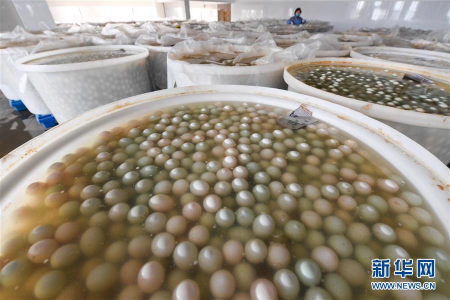 在江蘇高郵鴨集團生產車間,腌制好的鴨蛋準備進行清洗包裝作業(yè)(4月15日攝)。“高郵鴨蛋”是江蘇高郵的特色農業(yè)名片。近年來,當地在良種繁育、生態(tài)養(yǎng)殖、產品加工等方面加大力度,推動高郵鴨蛋品牌化建設,讓小鴨蛋成為帶動農戶致富的大產業(yè)。2019年,高郵市共計生產熟制鴨蛋產品近11.2億枚,年產值近17.68億元。新華社記者李博攝