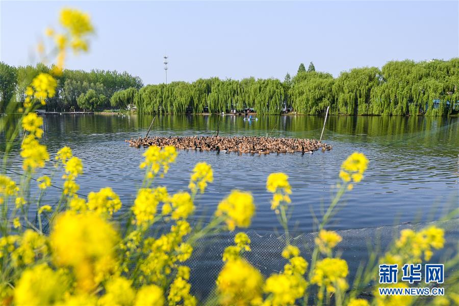 這是4月15日拍攝的江蘇高郵鴨良種繁育中心里的鴨群?!案哙]鴨蛋”是江蘇高郵的特色農業(yè)名片。近年來,當地在良種繁育、生態(tài)養(yǎng)殖、產品加工等方面加大力度,推動高郵鴨蛋品牌化建設,讓小鴨蛋成為帶動農戶致富的大產業(yè)。2019年,高郵市共計生產熟制鴨蛋產品近11.2億枚,年產值近17.68億元。新華社記者韓瑜慶攝