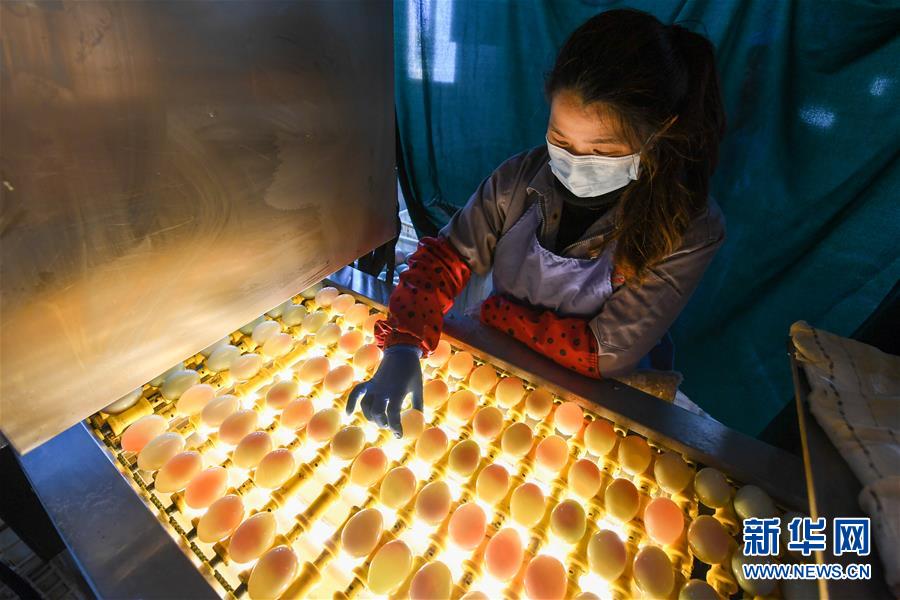 江蘇高郵鴨集團的工作人員在生產線上對鴨蛋進行光檢作業(yè)(4月15日攝)?!案哙]鴨蛋”是江蘇高郵的特色農業(yè)名片。近年來,當地在良種繁育、生態(tài)養(yǎng)殖、產品加工等方面加大力度,推動高郵鴨蛋品牌化建設,讓小鴨蛋成為帶動農戶致富的大產業(yè)。2019年,高郵市共計生產熟制鴨蛋產品近11.2億枚,年產值近17.68億元。新華社記者李博攝