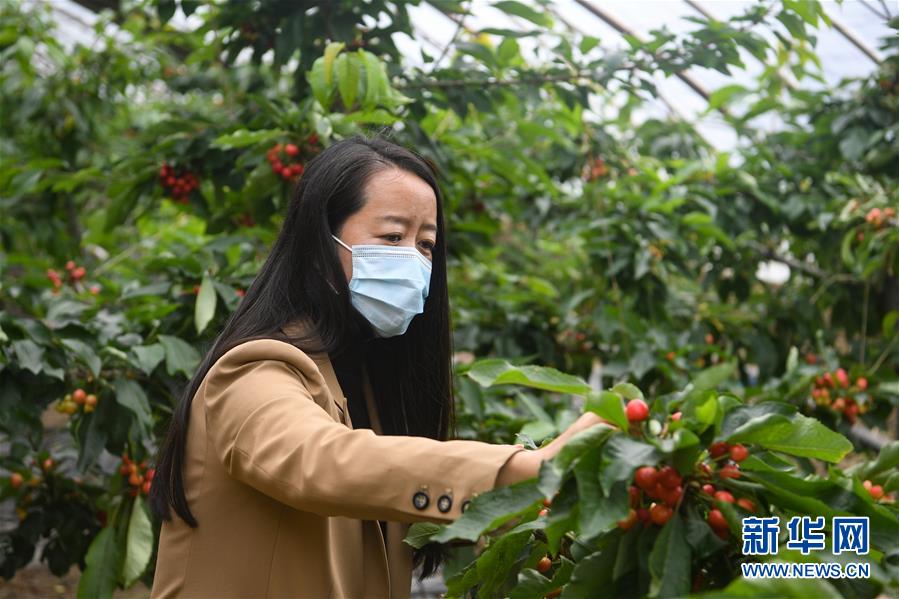 4月15日,在特克斯礪劍鋒農林科技有限公司赤谷新城休閑觀光農業(yè)示范園,一名參觀者在采摘反季節(jié)大櫻桃。近日,新疆伊犁哈薩克自治州特克斯縣的反季節(jié)大櫻桃陸續(xù)上市。傳統(tǒng)大田櫻桃的集中成熟期在6月底至7月初,采用溫室大棚種植櫻桃可將成熟期提前到3月底至4月初,填補了市場空檔期。特克斯礪劍鋒農林科技有限公司目前種植反季節(jié)大櫻桃共有19棚,櫻桃每公斤售價達200元。新華社記者宋彥樺攝