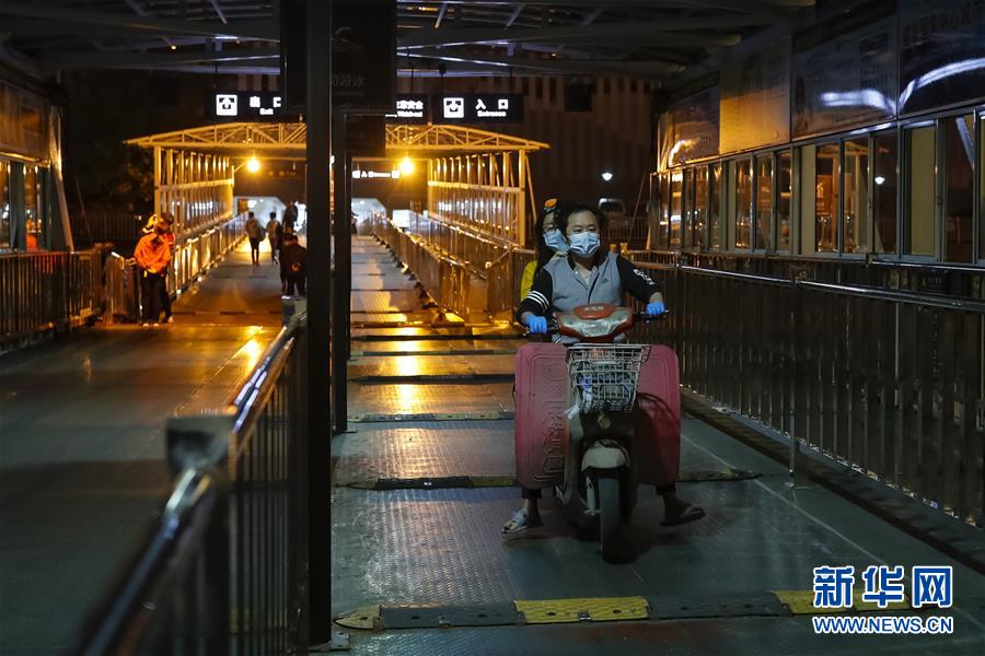 4月22日,市民騎電動(dòng)車乘坐武漢長(zhǎng)江客運(yùn)輪渡出行。為建立與經(jīng)濟(jì)社會(huì)發(fā)展和疫情防控需要相適應(yīng)的運(yùn)輸服務(wù)保障機(jī)制,保障市民出行需求,從4月22日起,武漢城市公共交通有序恢復(fù)全線網(wǎng)運(yùn)營(yíng)。新華社記者沈伯韓攝