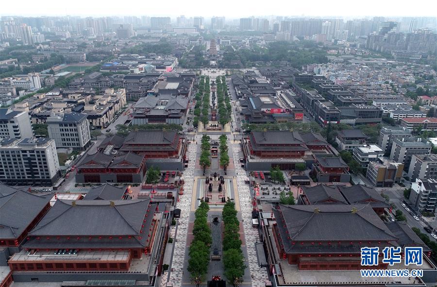 4月23日拍攝的西安大唐不夜城步行街(無(wú)人機(jī)照片)。 新華社記者 張博文 攝