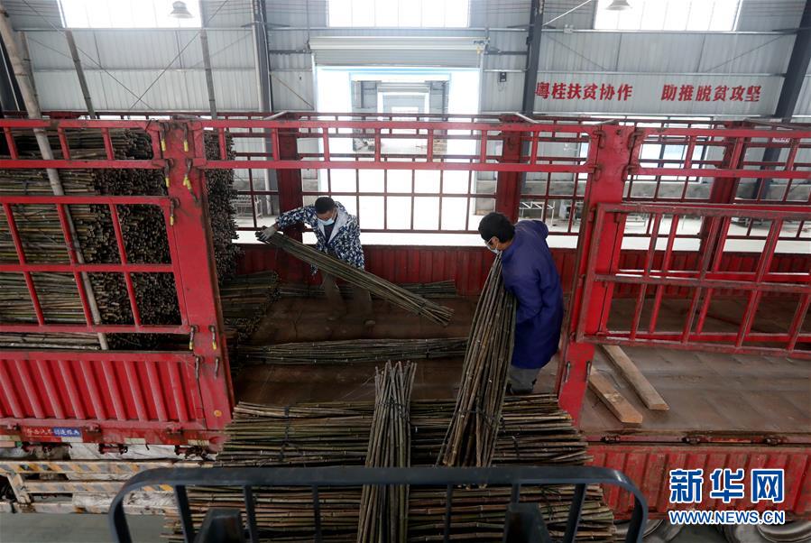 4月24日,在廣西融安縣農(nóng)產(chǎn)品加工暨粵桂扶貧協(xié)作產(chǎn)業(yè)園的一家竹制品外貿(mào)企業(yè),工人在裝載竹制品。日前,廣西柳州市融安縣農(nóng)產(chǎn)品加工暨粵桂扶貧協(xié)作產(chǎn)業(yè)園內(nèi)的企業(yè)已全部復(fù)工復(fù)產(chǎn),園區(qū)竹制品外貿(mào)企業(yè)正在加緊生產(chǎn),在完成外貿(mào)訂單的同時主動對接國外市場,研發(fā)新的竹制品,提高產(chǎn)品附加值。新華社記者趙曼君攝