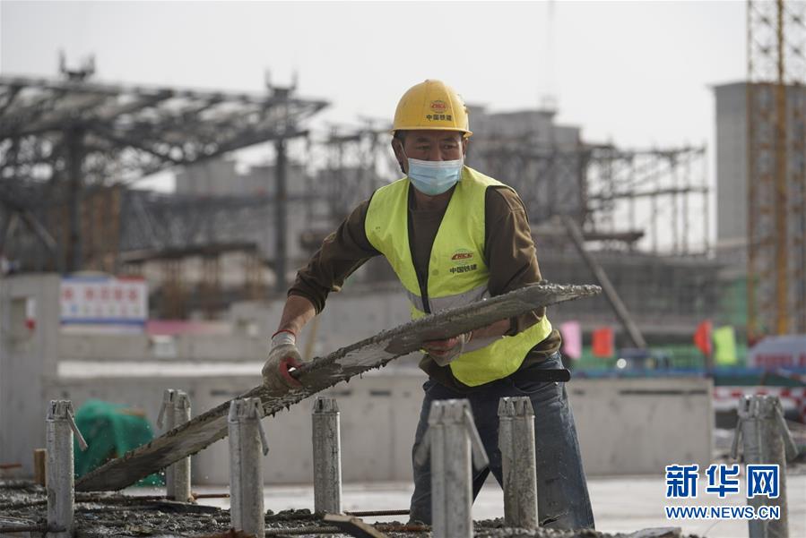 4月24日,中鐵建設集團的工人在星火站施工。北京星火站是京沈高鐵的始發(fā)站,站房總建筑面積18.3萬平方米,將于2020年底完工。目前正在進行混凝土主體結構收尾工作,鋼結構主體正在緊張施工,即將完工。新華社記者邢廣利攝