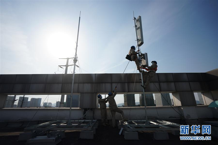 4月25日,在南京220千伏城南河變電站屋頂,工人在架設(shè)5G設(shè)備。當(dāng)日,三大通信運(yùn)營商的2座5G、3座4G基站建設(shè)工作在南京220千伏城南河變電站屋頂有序展開。在變電站內(nèi)建設(shè)基站可有效利用電網(wǎng)資源,縮短建設(shè)周期,節(jié)約建設(shè)成本。新華社記者季春鵬攝