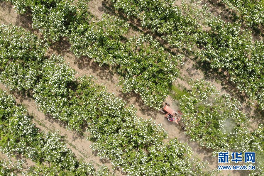 4月26日,農(nóng)民駕駛農(nóng)機在河北省清河縣馬屯紅果種植專業(yè)合作社的山楂種植區(qū)內(nèi)勞作(無人機照片)。4月下旬以來,河北省清河縣2萬余畝山楂樹競相開花,成為一道亮麗的風景線。清河縣年產(chǎn)山楂7.5萬余噸,山楂種植已成為當?shù)剞r(nóng)民的重要增收途徑。新華社記者牟宇攝