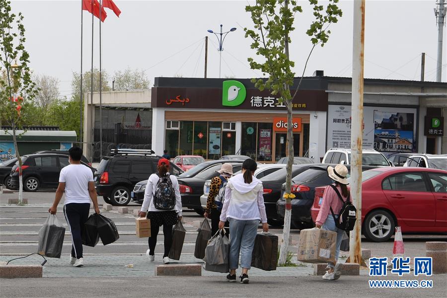 4月26日,在中哈霍爾果斯國際邊境合作中心中方出口處,不少游客和商販購物歸來。3月以來,在做好疫情防控的前提下,新疆霍爾果斯“口岸經(jīng)濟”加快復蘇,每天出入其中的商販和游客逐漸增多。與此同時,位于中哈霍爾果斯國際邊境合作中心中方配套區(qū)內的各家企業(yè)正抓緊時間生產(chǎn)。新華社記者顧煜攝