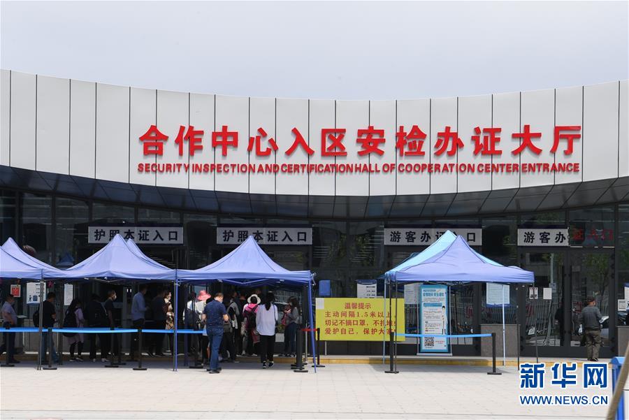 4月26日,在中哈霍爾果斯國際邊境合作中心中方入口處外正在排隊的游客和商販。3月以來,在做好疫情防控的前提下,新疆霍爾果斯“口岸經(jīng)濟”加快復蘇,每天出入其中的商販和游客逐漸增多。與此同時,位于中哈霍爾果斯國際邊境合作中心中方配套區(qū)內的各家企業(yè)正抓緊時間生產(chǎn)。新華社記者顧煜攝