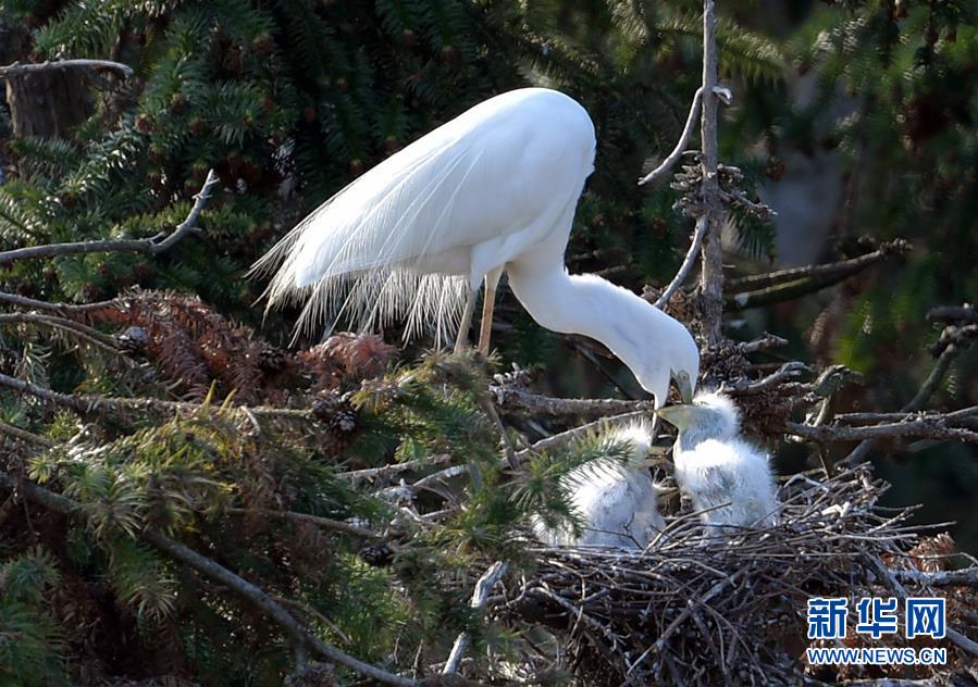 象山森林公園內(nèi)的白鷺(4月26日攝)。近日,在江西省南昌市新建區(qū)象山森林公園內(nèi),已安家筑巢的大批鷺鳥正陸續(xù)孵化后代,一派生機勃勃的景象。新華社記者彭昭之攝