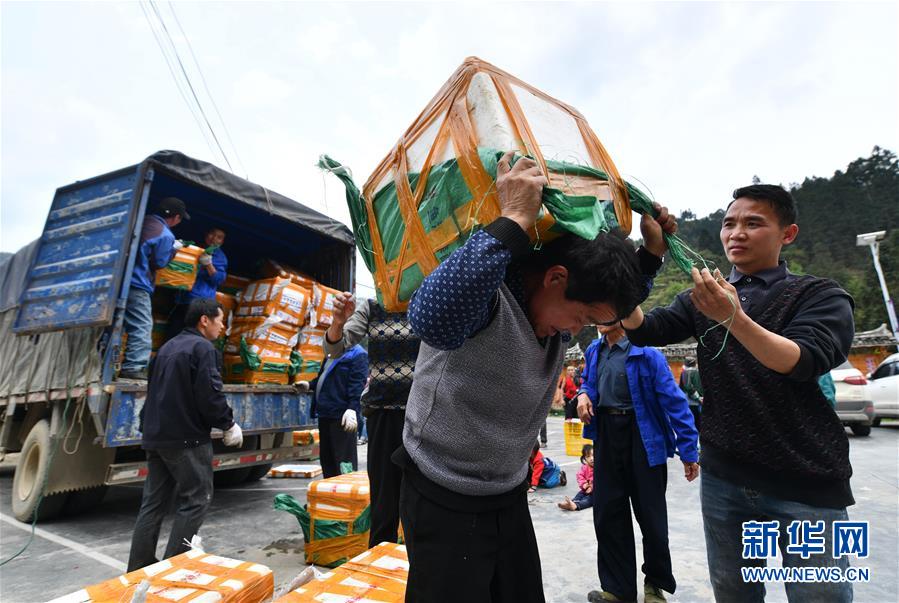 3月25日,在桂黔烏英苗寨,村民在搬運螺苗,準備投放。新華社記者黃孝邦攝