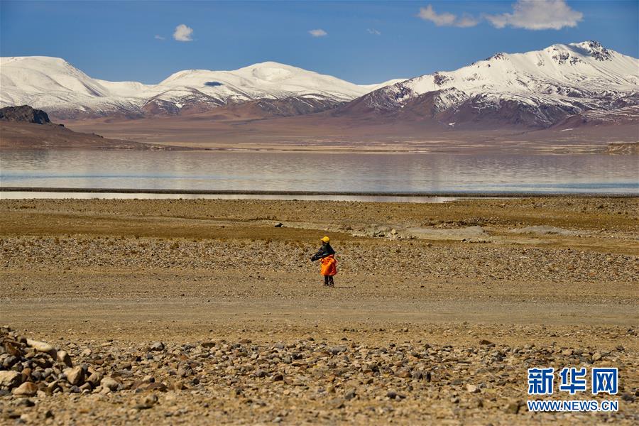 4月30日,一名藏族小孩在當(dāng)穹錯(cuò)湖畔玩耍。當(dāng)穹錯(cuò)地處西藏那曲市尼瑪縣南部,湖面海拔4475米。暮春時(shí)節(jié),湖水碧藍(lán)清亮,讓人仿佛置身仙境。新華社記者田金文攝