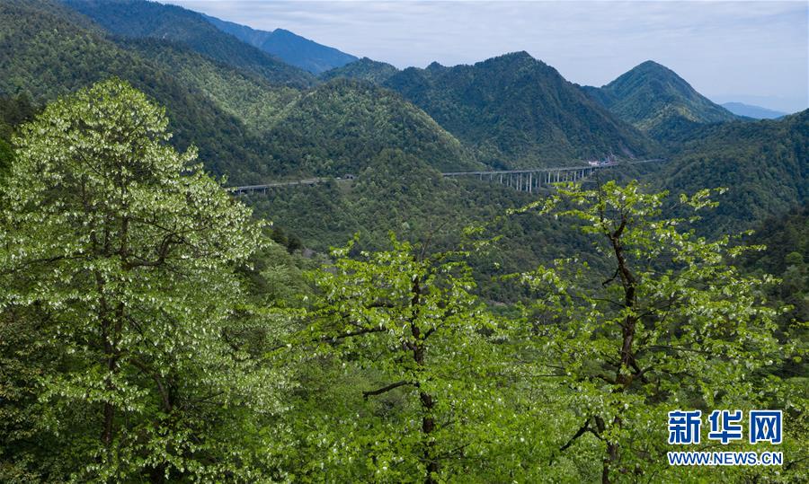 位于四川省滎經(jīng)縣的龍蒼溝國家森林公園里,鴿子花盛開(5月4日攝,無人機(jī)照片)。目前,位于四川省大相嶺山脈東麓北坡的龍蒼溝國家森林公園里,約8萬畝鴿子花盛開,猶如鴿群展翅欲飛。鴿子花即珙桐花,珙桐是珍稀植物,有著植物“大熊貓”“活化石”之稱,是國家一級保護(hù)植物,也是著名的觀賞植物。2008年,華中農(nóng)業(yè)大學(xué)、湖北民族學(xué)院和四川省縈經(jīng)縣林業(yè)部門聯(lián)合對龍蒼溝森林公園的珙桐進(jìn)行了種群生態(tài)學(xué)調(diào)查,發(fā)現(xiàn)珙桐在這里共分布約8萬畝,集中成片分布近4萬畝。珙桐面積之大、株數(shù)之多、密度之高,十分罕見。新華社記者 江宏景 攝