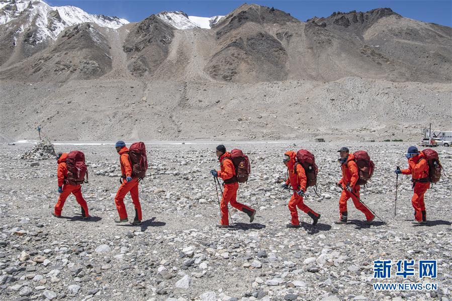 5月6日,登山隊(duì)員們向更高海拔進(jìn)發(fā)。新華社記者孫非攝