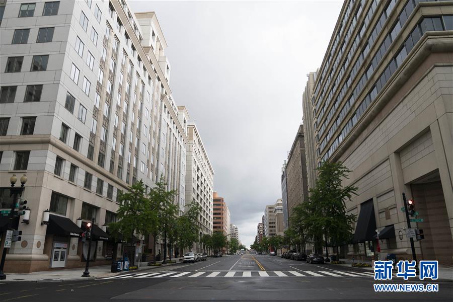 這是5月6日在美國首都華盛頓拍攝的空曠的街道。美國自動(dòng)數(shù)據(jù)處理公司(ADP)6日公布的數(shù)據(jù)顯示,由于新冠疫情沖擊美國經(jīng)濟(jì)和企業(yè),4月美國私營部門大幅削減約2023.6萬個(gè)就業(yè)崗位。新華社記者劉杰攝