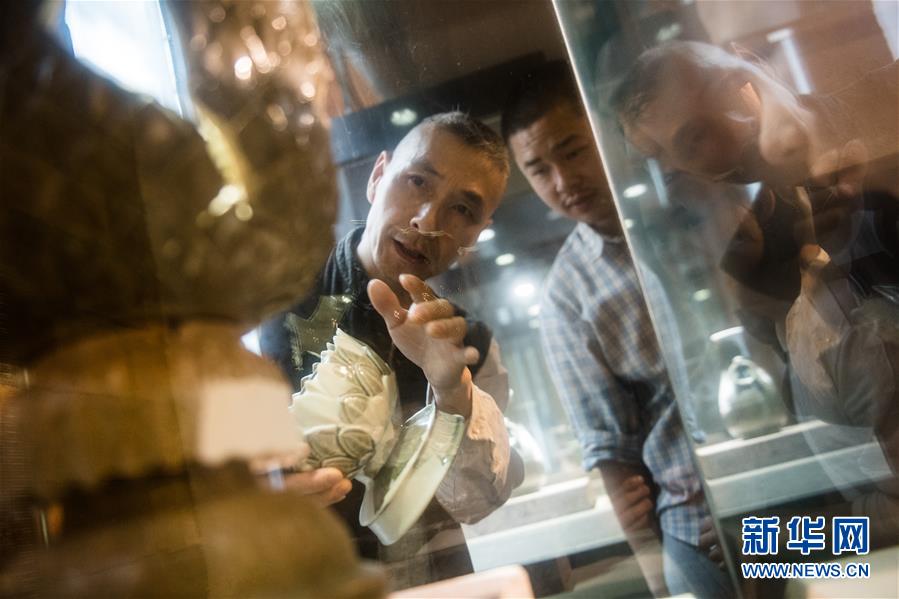 5月8日,項(xiàng)宏金在龍泉青瓷裝飾紋樣研究所和來(lái)訪(fǎng)的年輕瓷人分享古瓷。1965年出生的項(xiàng)宏金,被浙江龍泉年輕一代瓷人稱(chēng)為“項(xiàng)哥”,他從20世紀(jì)90年代開(kāi)始收集龍泉青瓷標(biāo)本,研究青瓷紋樣。2014年出版著作《龍泉青瓷裝飾紋樣》,次年開(kāi)設(shè)龍泉青瓷裝飾紋樣研究所,將自己收藏的千余件標(biāo)本跟瓷器愛(ài)好者、創(chuàng)作者免費(fèi)分享。新華社記者翁忻旸攝