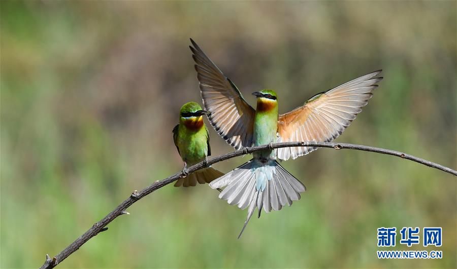 近日,百余只栗喉蜂虎和少量藍喉蜂虎來到海南省海口市西海岸多個地點棲息繁衍,為椰城增添一抹亮色。據(jù)了解,蜂虎每年春夏都會回到固定地點繁殖,由于習(xí)性特殊,蜂虎需要在新形成的沙質(zhì)土坡上做窩。為此,??谑邢嚓P(guān)部門每年在蜂虎到來之前,會在蜂虎棲息地整坡清樹,為蜂虎營造良好的棲息環(huán)境。