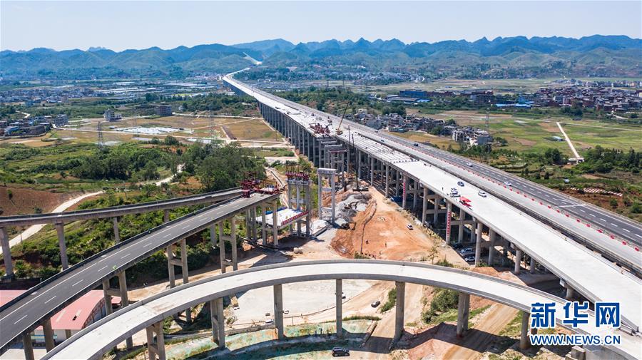 都安高速改擴(kuò)建路段的惠水特大橋與惠水樞紐(無人機(jī)照片,5月9日攝)。