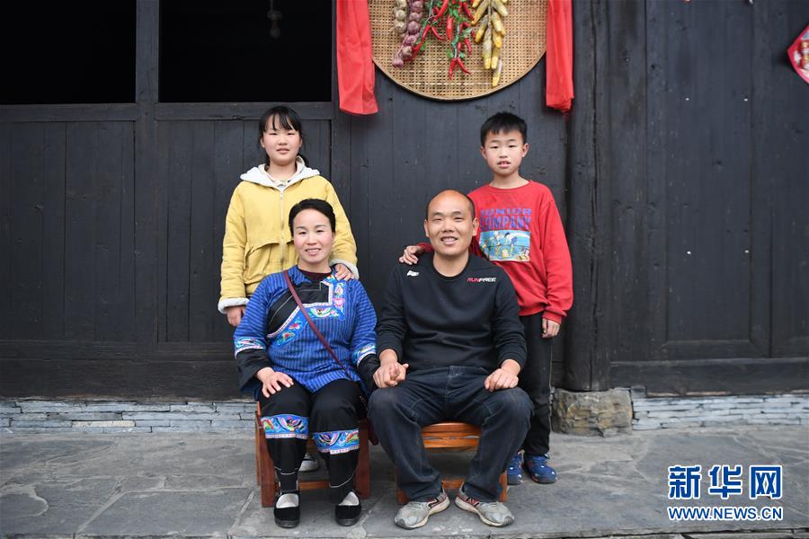 這是4月25日拍攝的楊正邦(前右)一家的合影。楊正邦1978年出生于十八洞村,在外打工多年。近些年,眼看來十八洞村的游客越來越多,村里越來越熱鬧,楊正邦在2017年結束自己的打工生涯回鄉(xiāng)發(fā)展。他先是在村里擺起小吃攤,2018年開起農家樂,去年又搭起新房子擴建成民宿,年度家庭人均純收入從2014年的1923元增加到2019年的7173元。新華社記者薛宇舸攝