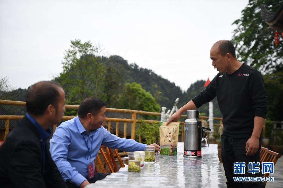 楊正邦(右)在為來自浙江的住客介紹十八洞村種植的“黃金茶”(4月25日攝)。楊正邦1978年出生于十八洞村,在外打工多年。近些年,眼看來十八洞村的游客越來越多,村里越來越熱鬧,楊正邦在2017年結束自己的打工生涯回鄉(xiāng)發(fā)展。他先是在村里擺起小吃攤,2018年開起農家樂,去年又搭起新房子擴建成民宿,年度家庭人均純收入從2014年的1923元增加到2019年的7173元。新華社記者薛宇舸攝
