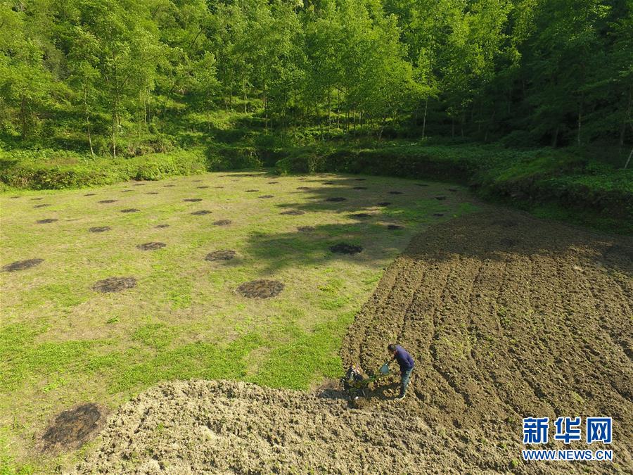 施六金在田間翻耕(4月24日攝)。1973年出生于十八洞村的施六金,由于父親患病很早就放棄學業(yè)和母親扛起了家庭的重擔。為了生活,他還曾遠去東南亞打工。2015年,看到家鄉(xiāng)的變化,施六金回到村里開起了農家樂,年度家庭人均純收入也從2014年的1715元增長到了2019年的35696元。2018年,施六金與心愛的人組建了家庭。今年初,施六金與愛人迎來了一個大胖小子?!白鋈俗鍪乱没貓蠛透卸??!笔┝鸾o剛出生的兒子取名施澤恩。新華社記者薛宇舸攝