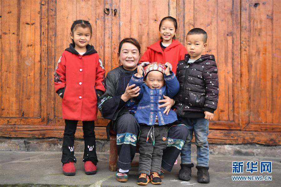 這是4月24日拍攝的吳美金(左二)和她孫子孫女的合影。1967年出生的吳美金,1992年嫁入飛蟲村(現十八洞村飛蟲寨)時,只有爛泥路的飛蟲村不僅田土少,掙錢活路也少,生活十分困難。2014年,吳美金加入了十八洞村苗繡特產農民專業(yè)合作社,從小就會的苗繡傳統手藝如今成了家庭增收的法寶,不僅在家門口就把錢掙了,同時還能照顧年幼的孫子孫女。“現在的日子,比年輕的時候好多了。”吳美金說。新華社記者薛宇舸攝