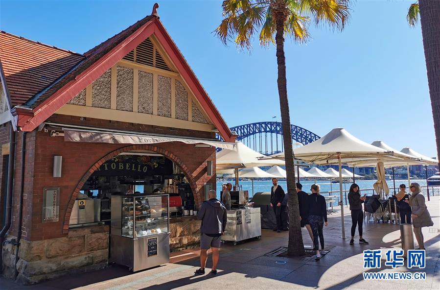 5月10日,在澳大利亞悉尼環(huán)形碼頭,市民在一間咖啡屋前等候。