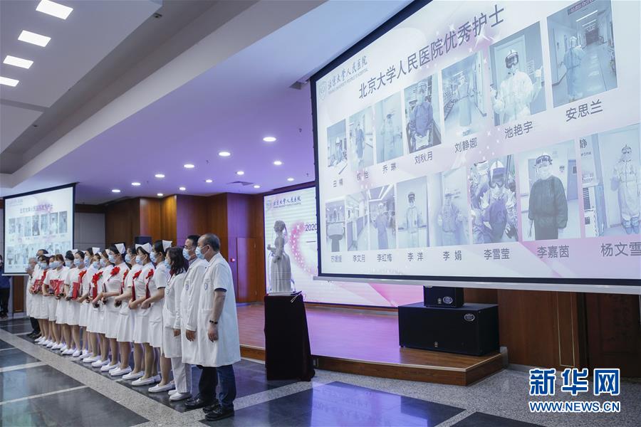 5月11日,援鄂醫(yī)療隊隊員代表在活動上分享戰(zhàn)“疫”故事。在國際護士節(jié)到來之際,北京大學(xué)人民醫(yī)院11日舉辦慶祝護士節(jié)暨優(yōu)秀集體和個人表彰活動,并邀請援鄂醫(yī)療隊護士代表分享戰(zhàn)“疫”故事。我國今年護士節(jié)的主題為“致敬護士隊伍,攜手戰(zhàn)勝疫情”。新華社記者張玉薇攝