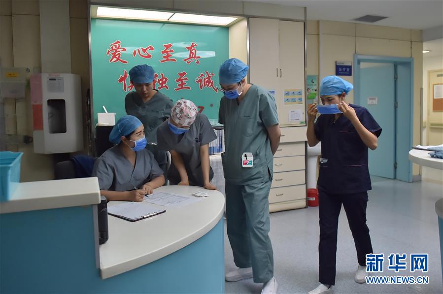 5月11日,在北京地壇醫(yī)院感染二科護(hù)士站,白班護(hù)士高齊(右)與晚班護(hù)士劉印懷交接工作。北京地壇醫(yī)院是北京市收治新冠肺炎患者的定點醫(yī)院之一,醫(yī)院的醫(yī)護(hù)人員一直奮戰(zhàn)在抗擊疫情的一線。在國際護(hù)士節(jié)前夕,記者前往北京地壇醫(yī)院,記錄下抗疫一線護(hù)士的日常工作狀態(tài)。新華社記者彭子洋攝