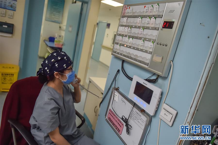 5月11日,在北京地壇醫(yī)院感染二科護(hù)士站,護(hù)士彭蒨接聽病房呼喚鈴電話。北京地壇醫(yī)院是北京市收治新冠肺炎患者的定點醫(yī)院之一,醫(yī)院的醫(yī)護(hù)人員一直奮戰(zhàn)在抗擊疫情的一線。在國際護(hù)士節(jié)前夕,記者前往北京地壇醫(yī)院,記錄下抗疫一線護(hù)士的日常工作狀態(tài)。新華社記者彭子洋攝