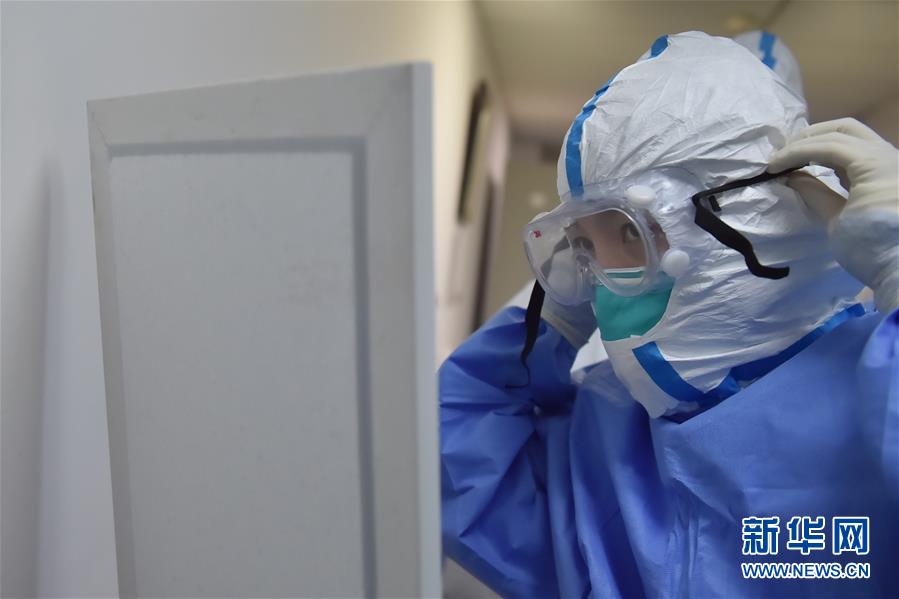 5月11日,在北京地壇醫(yī)院感染二科病房外,護(hù)士劉印懷穿戴防護(hù)設(shè)備準(zhǔn)備進(jìn)入病房。北京地壇醫(yī)院是北京市收治新冠肺炎患者的定點醫(yī)院之一,醫(yī)院的醫(yī)護(hù)人員一直奮戰(zhàn)在抗擊疫情的一線。在國際護(hù)士節(jié)前夕,記者前往北京地壇醫(yī)院,記錄下抗疫一線護(hù)士的日常工作狀態(tài)。新華社記者彭子洋攝