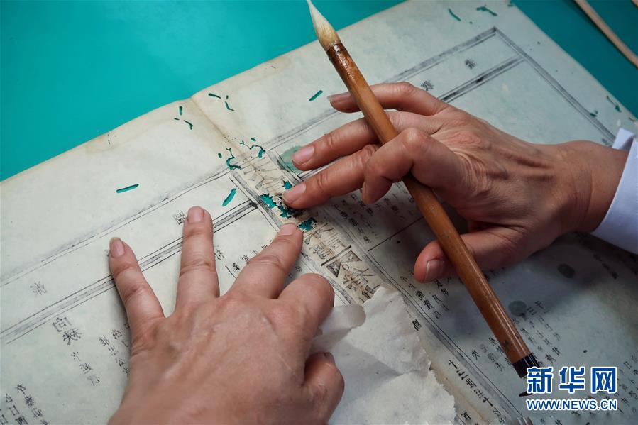 5月13日,天一閣藏品修復(fù)部主任王金玉在對書頁進(jìn)行修復(fù)。天一閣藏品修復(fù)部目前有修復(fù)師14人,每年約修復(fù)古籍14000余頁。據(jù)介紹,修復(fù)一冊古籍通常需要1至2個月,有的甚至需要1年以上。新華社記者鄭夢雨攝