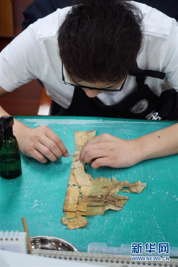 5月13日,古籍修復師在對書頁進行修復。天一閣藏品修復部目前有修復師14人,每年約修復古籍14000余頁。據(jù)介紹,修復一冊古籍通常需要1至2個月,有的甚至需要1年以上。新華社記者鄭夢雨攝