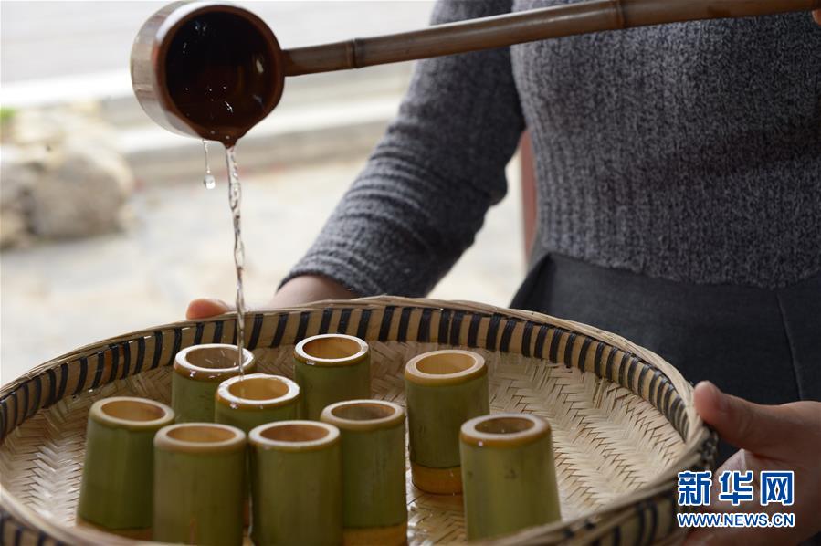 5月14日,在貴州省畢節(jié)市百里杜鵑管理區(qū)黃泥鄉(xiāng)龍?zhí)链逡患揖谱鞣唬迕裨谄穱L剛出的蒸餾酒。貴州省畢節(jié)市百里杜鵑管理區(qū)黃泥鄉(xiāng)龍?zhí)链宓凝執(zhí)凉啪?,因獨特的古法釀酒技術(shù),口感獨特而遠近聞名。全村有釀酒戶142戶,年產(chǎn)量達45萬多公斤,龍?zhí)凉啪七h銷重慶、廣東、浙江等地,龍?zhí)凉啪埔殉蔀辇執(zhí)寥嗽鍪盏闹匾獊碓?。新華社記者楊楹攝