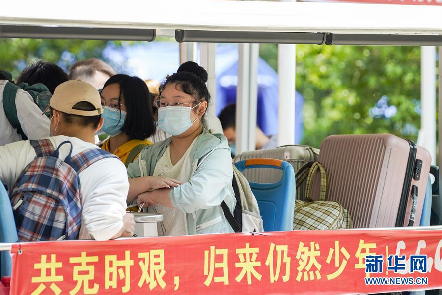 5月15日,在西南大學的返校學生報到點,學生在校內(nèi)轉運車上準備前往宿舍。當日,重慶西南大學迎來疫情以來首批返校大學生。據(jù)介紹,按照疫情防控的需要,重慶市高校2020年春季學期從5月11日起按照“一校一策”原則,實行錯峰錯時分批次有序開學復課。新華社記者劉潺攝