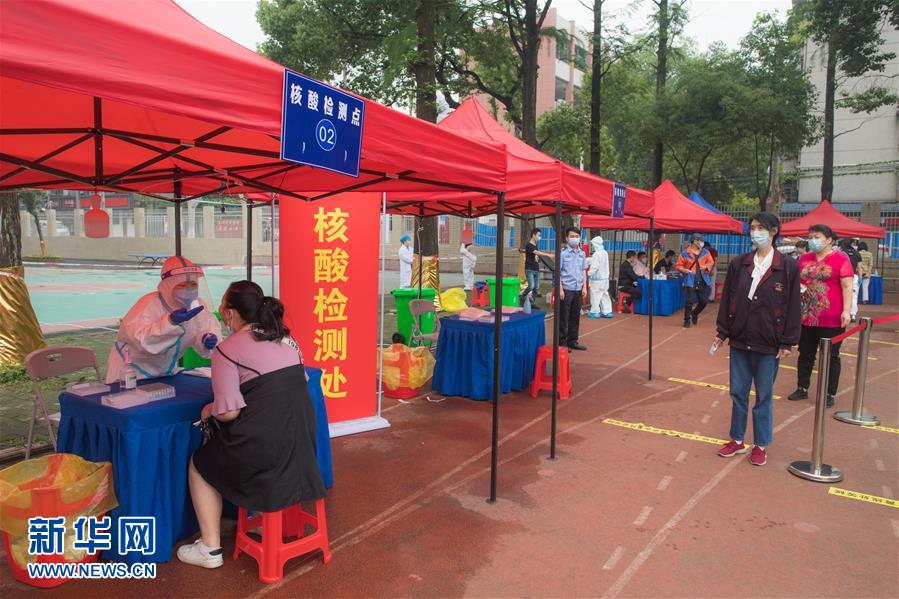 5月15日,在武漢東西湖區(qū)吳家山第一小學(xué)操場(chǎng)檢測(cè)點(diǎn),工作人員對(duì)市民進(jìn)行核酸檢測(cè)。近日,武漢將對(duì)全市市民有序開展核酸檢測(cè),進(jìn)一步摸清無(wú)癥狀感染者底數(shù),進(jìn)而有效管控。新華社記者肖藝九攝