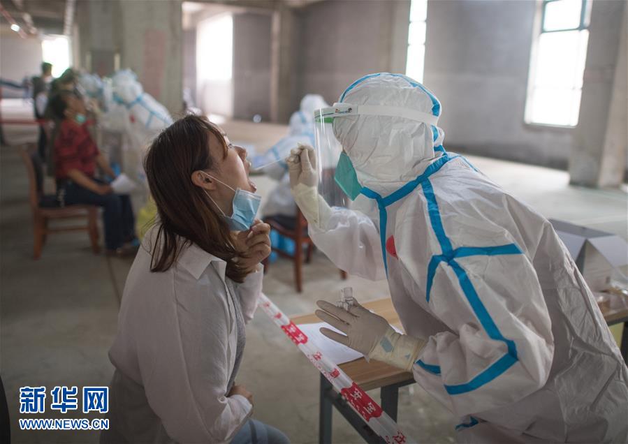 5月15日,在武漢華生漢口城市廣場四期檢測點,工作人員對市民進行核酸檢測。近日,武漢將對全市市民有序開展核酸檢測,進一步摸清無癥狀感染者底數(shù),進而有效管控。新華社記者肖藝九攝