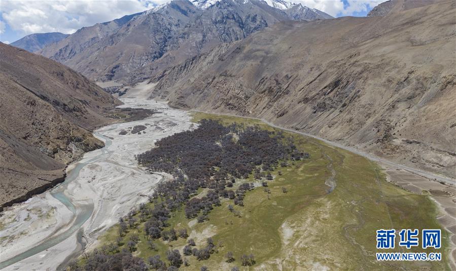 珠穆朗瑪峰國家級自然保護區(qū)內(nèi)的沙棘林(5月16日攝,無人機照片)。新華社記者孫非攝