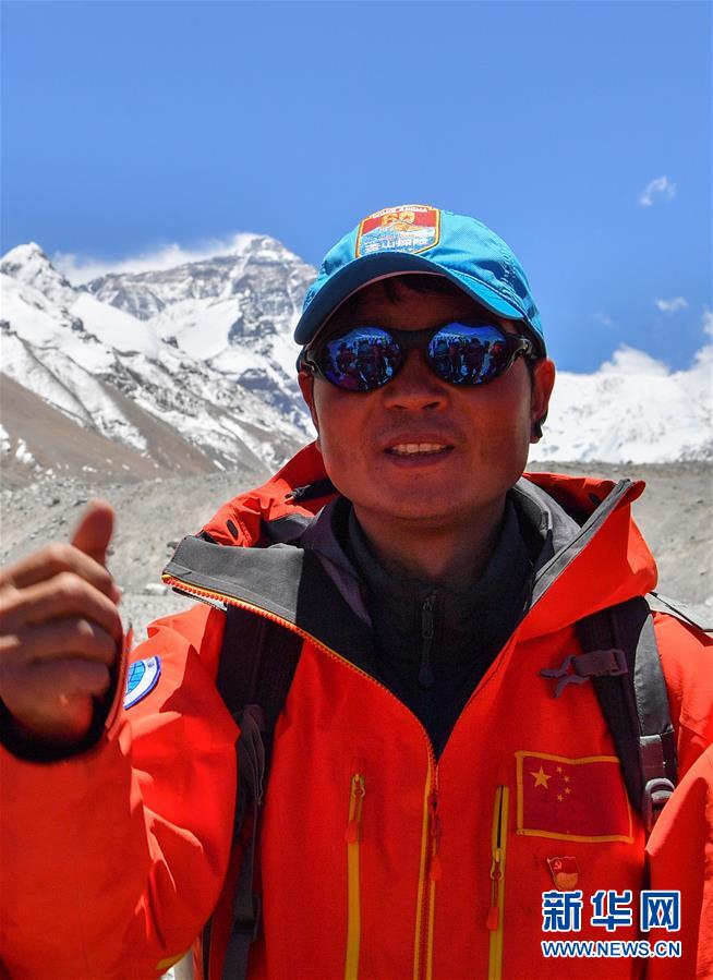 這是5月10日在珠峰大本營(yíng)拍攝的國(guó)測(cè)一大隊(duì)副總工程師陳剛。新華社記者晉美多吉攝