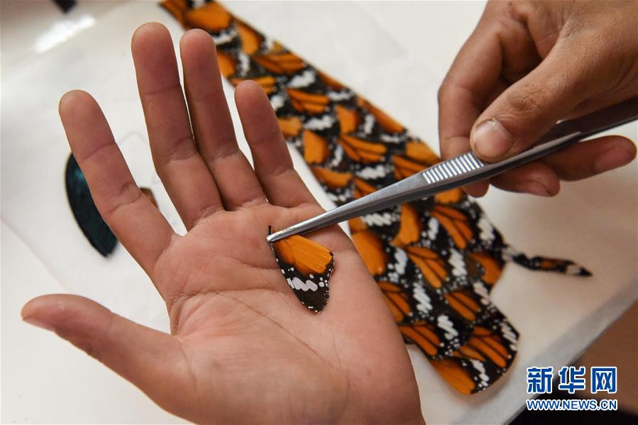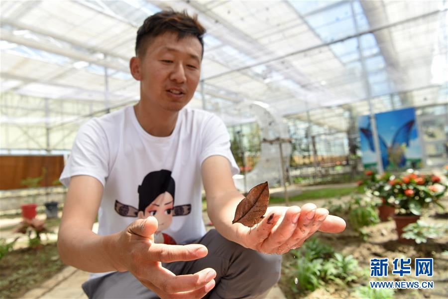 在吉木薩爾縣七彩蝶園,關富云在制作蝴蝶標本(5月15日攝)。走進關富云的七彩蝶園,游客不僅可以近距離接觸翩翩起舞的蝴蝶,還可以欣賞蝴蝶破繭成蝶的蛻變過程。今年34歲的關富云用9年的時間實現了自己的“蝴蝶夢”,完成美麗的“蝶變”。關富云家住新疆吉木薩爾縣北地社區(qū)。2011年,他看到一檔農業(yè)致富節(jié)目,萌生了養(yǎng)殖蝴蝶的想法。關富云說,當時蝴蝶養(yǎng)殖還是一種新興產業(yè),他抱著試一試的想法,在海南學習了3個月蝴蝶養(yǎng)殖,帶回100多個蝶蛹在家試驗養(yǎng)殖。蝴蝶的生存周期短,在當地養(yǎng)殖需要克服溫度、濕度、病蟲害等問題。關富云不斷嘗試,越挫越勇,羽化成功的蝴蝶在2014年終于突破了萬只。蝴蝶的色彩艷麗,活體蝴蝶可用于婚慶、開業(yè)慶典等活動中放飛,可以取得很好的收益。但它的生命短暫,如何才能最大化蝴蝶的效益,留住它的美呢?關富云動起了心思,開始嘗試制作標本和蝶翅畫?!昂宛B(yǎng)殖不同,做蝶翅畫是個創(chuàng)作的過程,從選擇標本到粘貼,每一步都要突出美感?!标P富云介紹,一幅色彩明艷、栩栩如生的蝶翅畫耗時多日才能完成。如今,關富云的活體蝴蝶和蝶翅畫通過線上線下銷售,產品還銷往北京、廈門等地。關富云的蝴蝶產品得到市場的認可,政府也對他給予大力支持。2019年,吉木薩爾縣在泉子街鎮(zhèn)建起蝴蝶觀賞園,吸引了不少游客到此參觀游玩。對于未來的發(fā)展,關富云信心滿滿,“我希望把蝴蝶產業(yè)發(fā)展到天山南北,讓人們在寒冷的冬季也能觀賞到蝴蝶,并且讓更多人參與其中,致富脫貧”。新華社記者丁磊攝