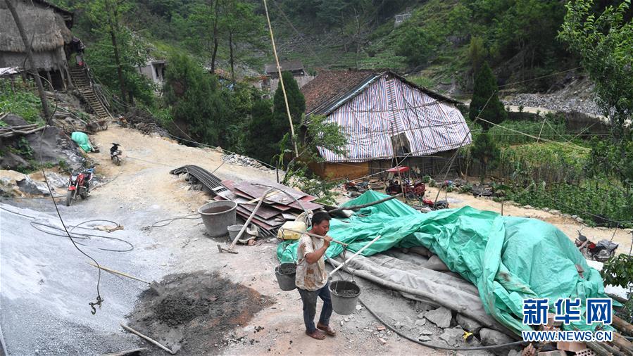 大化瑤族自治縣雅龍鄉(xiāng)勝利村群眾在建設(shè)水柜(2019年6月6日攝)。新華社記者張愛林攝