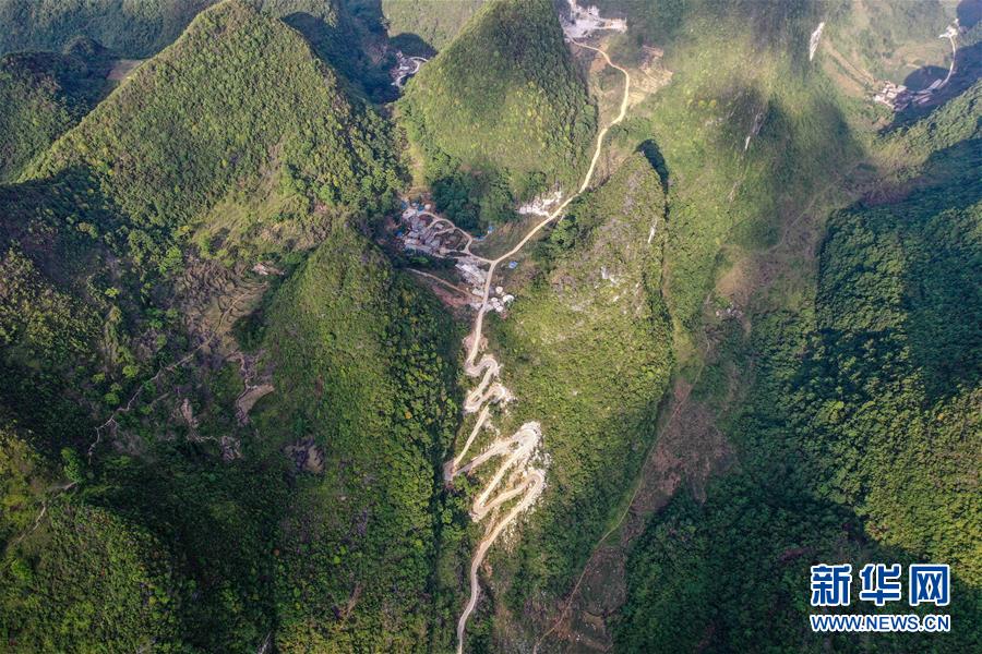 這是通向大化瑤族自治縣七百弄鄉(xiāng)弄平村的山路(5月15日攝,無人機照片)。新華社記者曹祎銘攝