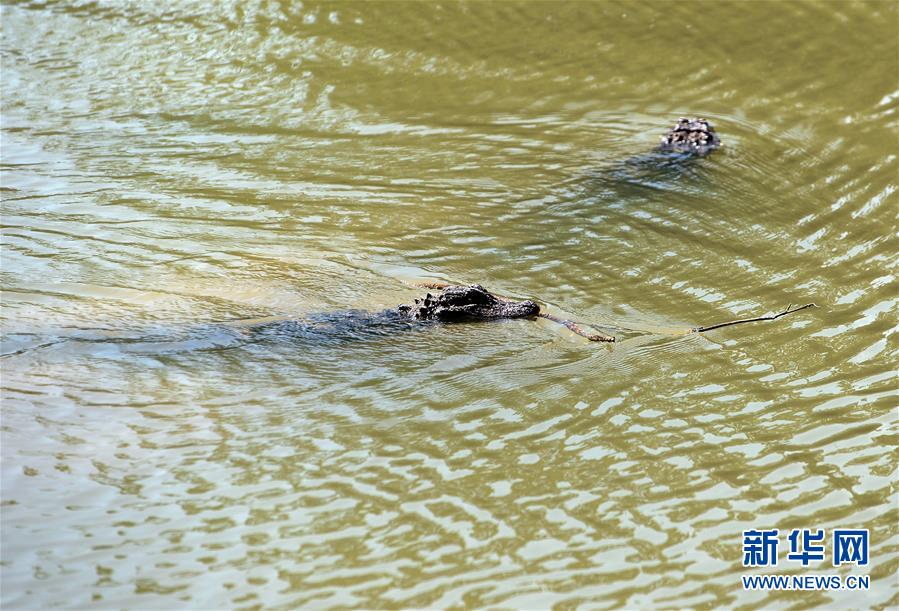5月20日,放歸的揚(yáng)子鱷在池塘中活動(dòng)。當(dāng)日,安徽揚(yáng)子鱷國(guó)家級(jí)自然保護(hù)區(qū)在安徽多地同時(shí)放歸揚(yáng)子鱷,當(dāng)天共放歸人工繁育揚(yáng)子鱷32條。該保護(hù)區(qū)計(jì)劃2020年野外放歸揚(yáng)子鱷280條,剩余248條將在今后陸續(xù)放歸。新華社記者韓曉雨攝
