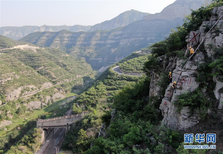 在太行山深處的中國鐵路鄭州局集團有限公司月山工務段,有一群被稱為捅山工的人。每年汛期來臨前,他們要對山體進行檢查、清理,在懸崖峭壁間“行走”,揮動著手中的鋼釬,排除威脅鐵路行車安全的危石。