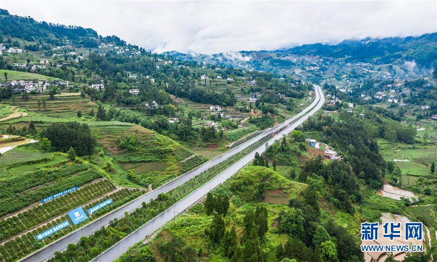 這是正習高速公路羊磴至夜郎路段(左側道路)(無人機照片,5月21日攝)。新華社記者陶亮攝
