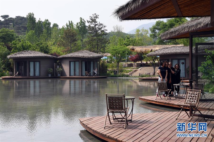 5月20日,游客在天津市薊州區(qū)下營鎮(zhèn)小港村“不知山鄉(xiāng)宿”休閑拍照。新華社記者 馬平 攝