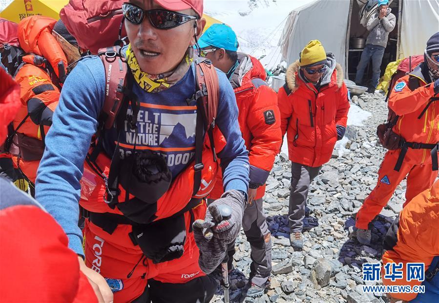 5月24日,2020珠峰高程測量登山隊(duì)部分人員從海拔6500米的前進(jìn)營地出發(fā)。
