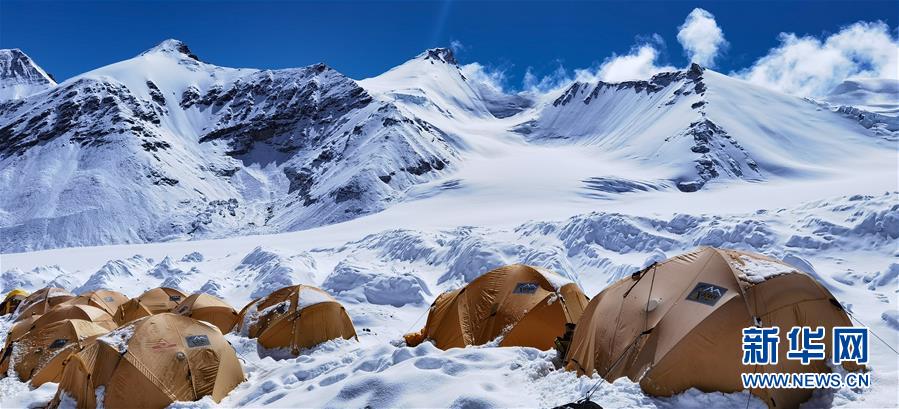 被大雪覆蓋的海拔6500米的珠峰前進(jìn)營地(5月22日攝)。新華社記者晉美多吉攝