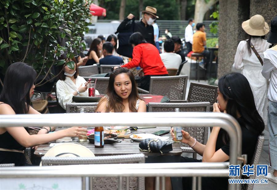 5月24日,游客在上海思南公館光顧露天夜市美食街。新華社記者陳飛攝
