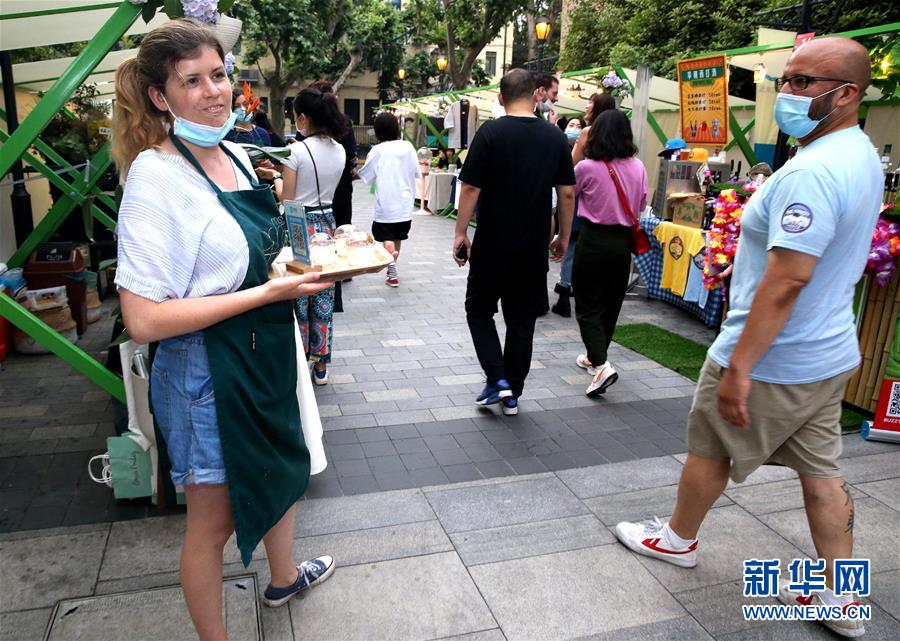 5月24日,調(diào)酒師在上海思南公館露天夜市進行網(wǎng)絡直播。入夏以來,上海思南公館推出“思南夜派對”夜間經(jīng)濟大排檔,包括生活市集、深夜食堂、夜游露天博物館等板塊,匯集了國潮品牌、創(chuàng)意美食、藝術衍生品等攤位,為公眾帶來一站式夜間休閑“加油站”,促進夜間消費。新華社記者陳飛攝